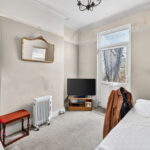 Upstairs, you’ll find two generous double bedrooms, including a main bedroom with another striking bay window and built-in wardrobes, plus a third bedroom that could serve as a study, nursery, or dressing room.
