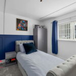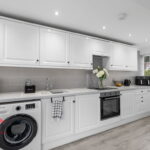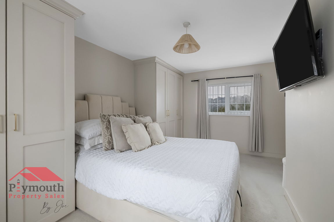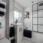 Upstairs, the main bedroom spans the width of the property, providing a wonderfully spacious retreat with built-in wardrobes. The second bedroom is also well-proportioned, featuring built-in wardrobes and modern LED lighting, and both are complemented by a stylishly refurbished bathroom with a contemporary finish.