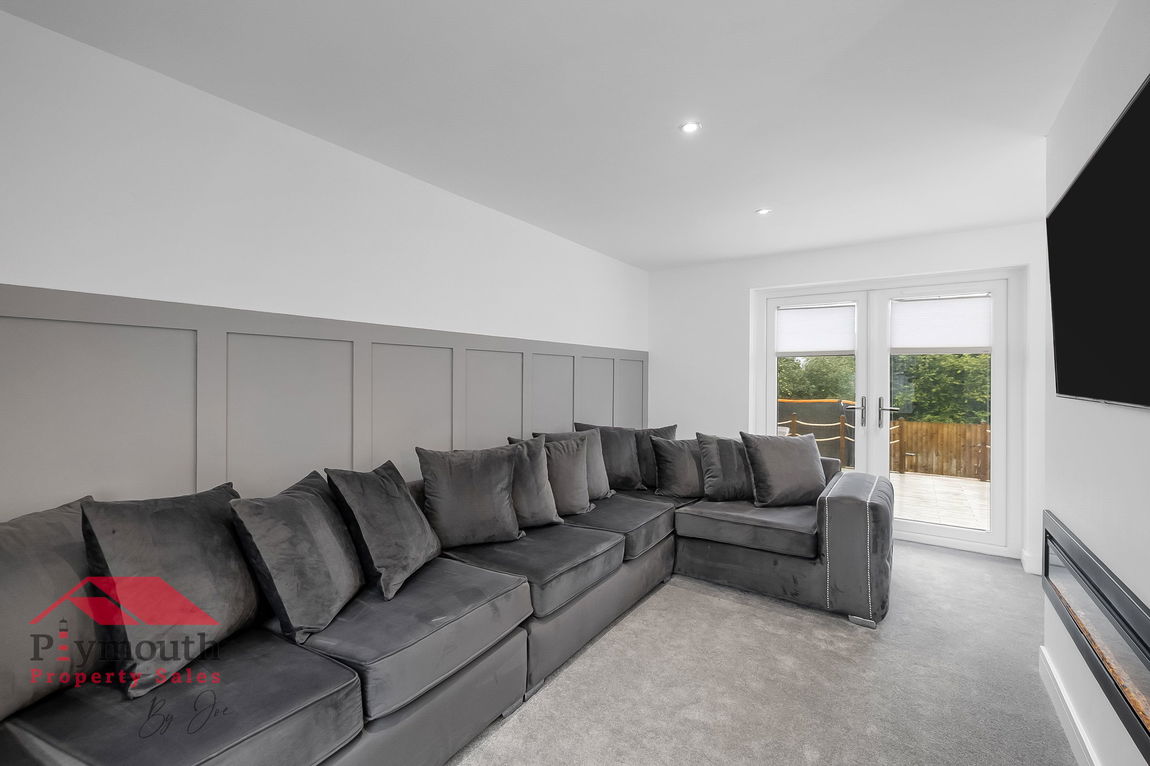 The ground floor is particularly impressive, with a large kitchen and dining area that runs the full depth of the house, offering an abundance of space for both cooking and entertaining. This versatile room enjoys excellent natural light and includes double doors that open onto the garden, creating a seamless connection between indoors and outdoors. On the other side of the hallway, the lounge provides another generously sized living space, equally bright and inviting, with its own set of double doors leading directly out to the garden.