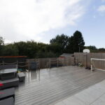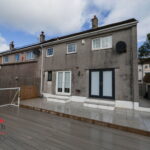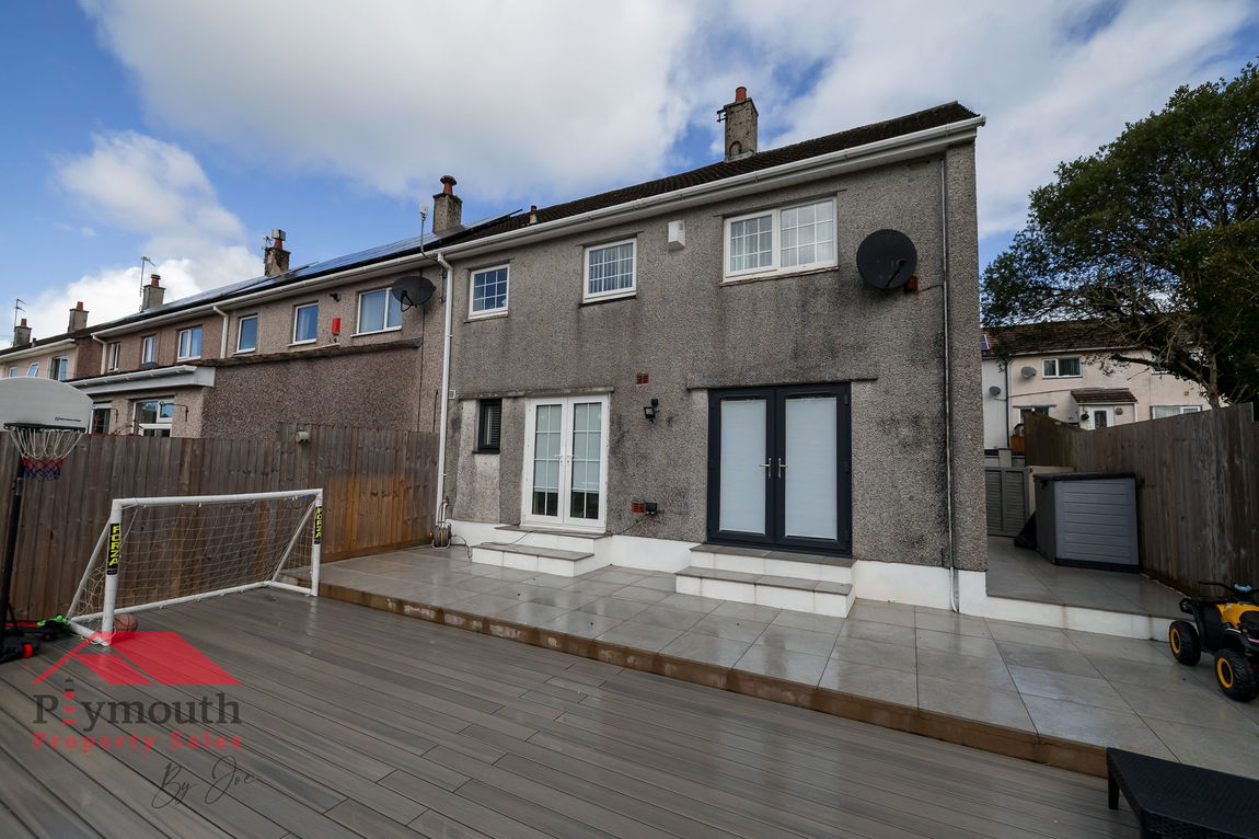 Outside, the rear garden is a true feature of the home, with a raised decked area perfect for relaxing or entertaining, stepping down to a lawned section that adds greenery and practicality.