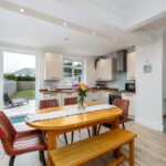 Step inside and be greeted by a bright, airy hallway that instantly sets the tone for the rest of the home – open, inviting, and full of natural light. The open-plan lounge, dining, and kitchen forms the heart of the home, designed with both entertaining and everyday family life in mind. The sleek, modern kitchen flows seamlessly into the dining area, while the lounge’s stylish décor and large front window flood the space with sunshine, creating a warm and welcoming atmosphere.
