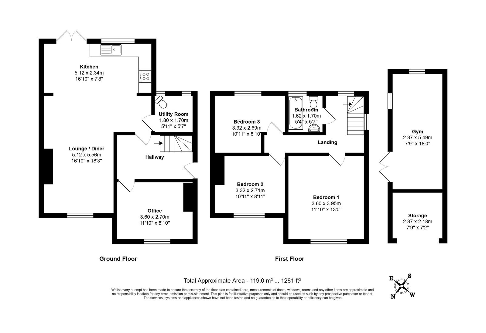 Just off the kitchen, a utility room keeps laundry neatly tucked away, while also doubling as a downstairs WC for extra convenience. There’s also a separate home office – perfect for remote work, a study space, or even a creative hobby room.