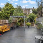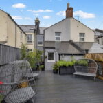 To the rear, the property boasts an impressively large garden with a raised decking area and a garage – a rare find for this style of home. The outdoor space provides multiple seating areas, ideal for entertaining, relaxing, or simply enjoying the garden with family and friends, while the garage offers secure parking for a smaller car or additional storage.