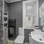 Upstairs, there are three bedrooms, each finished to a high standard, alongside a beautifully designed family bathroom. The master bedroom benefits from being a very large bedroom with a stunning feature wall and generous natural light through the bay window.