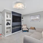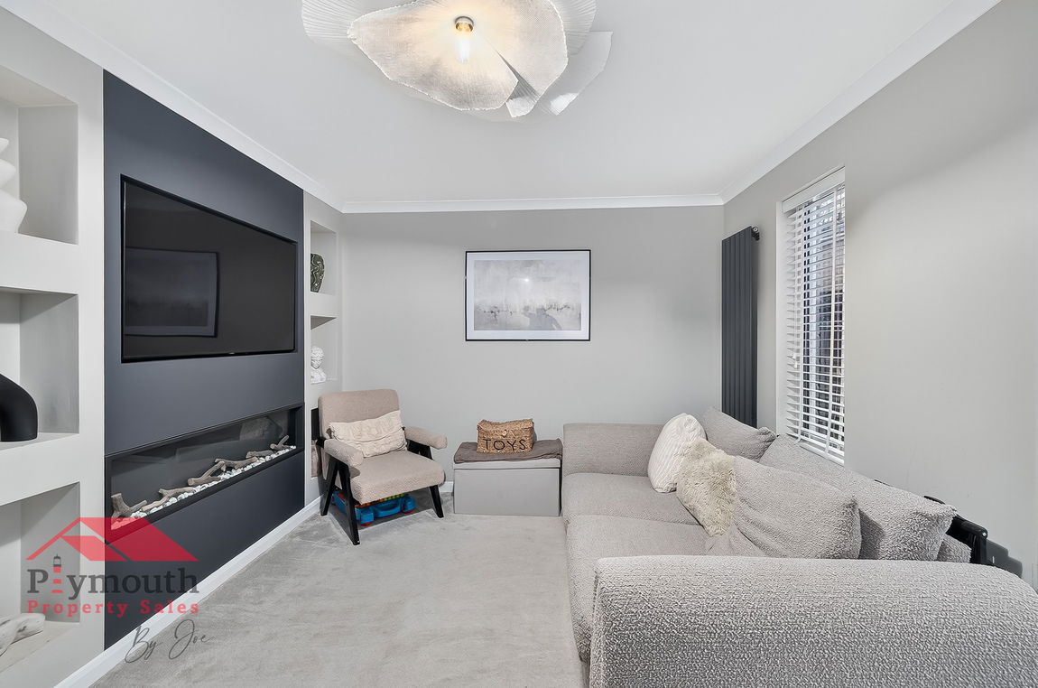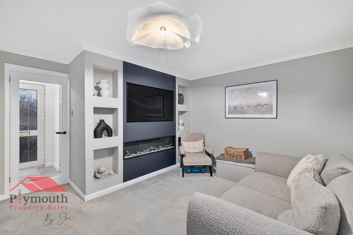 The welcoming lounge is the heart of the home, featuring a stunning built in media wall complete with a cosy fireplace, perfect for relaxing evenings in. Attractive built in shelving adds character while providing practical storage. Double doors open seamlessly out to the low maintenance rear garden, allowing the space to flow beautifully for everyday living and effortless entertaining.