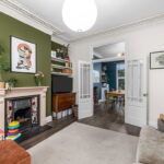As you enter, you are welcomed by high ceilings and a bright, spacious feel throughout. There are two reception areas, currently arranged as a living room and dining room, joined by an adjoining doorway that creates a perfect flow for family life and socialising. Every room feels warm and inviting, reflecting the love and attention that has gone into maintaining the home.